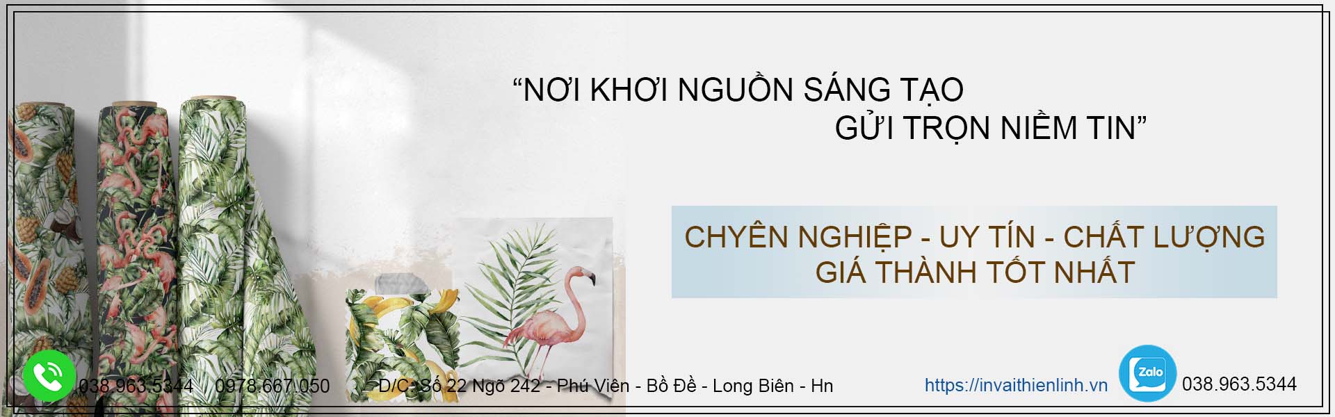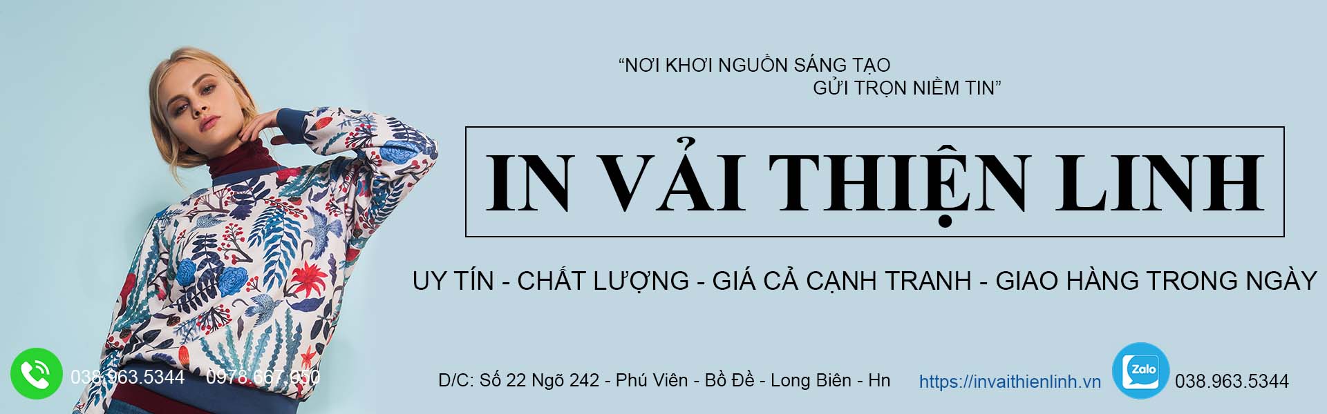 Rất hài lòng với dịch vụ in vải Thiện Linh – đội ngũ tư vấn và thiết kế rất nhiệt tình, chất lượng in sắc nét, tiến độ ra hàng nhanh, giá cả phải chăng…